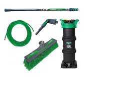 Mit der Unger Hydropower Osmoseanlage/ Reinwassersystem inkl. verschiedener Teleskopstangen und Bürsten können Sie kleine, sowie große gläserne Flächen oder Solarpaneele zuverlässig, schnell und gründlich reinigen.